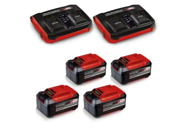 Der Akku-Rasenmäher GP-CM 36/52 S Li BL wird mit vier 5,2 Ah Power X-Change Akkus und zwei Twinchargern zum gleichzeitigen Laden von zwei Akkus geliefert.