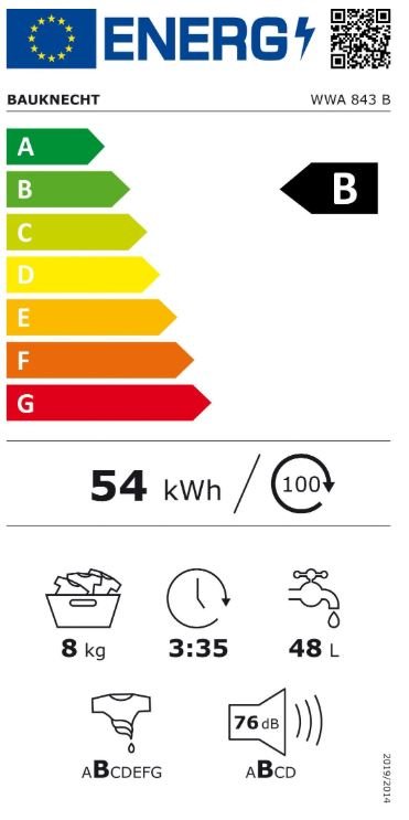 Die WWA 843 B ist eine Waschmaschine von BAUKNECHT. Die Energieeffizienzklasse B (Skala: A bis G) zeichnet diese Waschmaschine als besonders stromsparendes Modell aus. Der Frontlader eignet sich vor allem für Haushalte mit bis zu 4 Personen, da dieser 8 kg Fassungsvermögen hat. Der verbaute Invertermotor garantiert eine geräuscharme und langlebige Arbeitsweise.