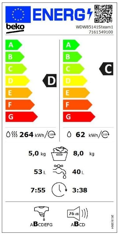 Energieeffizienzklasse Wasch-Trocken-Zyklus (Skala) | D (A bis G) |