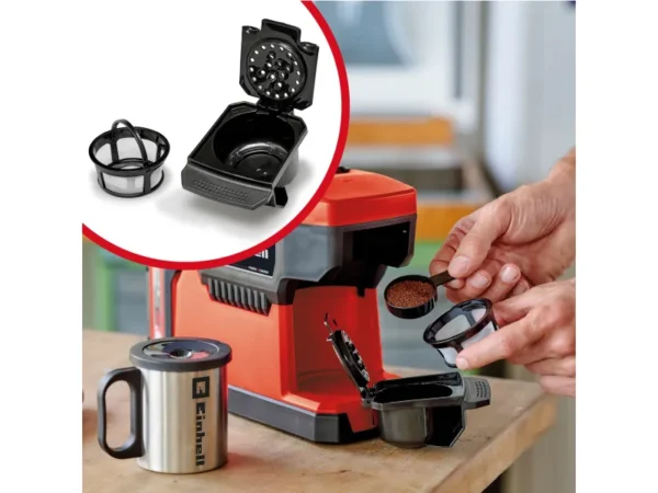 Die Einhell Akku-Kaffeemaschine TE-CF 18 Solo old Kaffeemaschine TE-CF 18 Solo old Einhell Kaffeemaschine TE-CF 18 Solo old Einhell TE-CF 18 Li-Solo Akku-Kaffeemaschine ermöglicht es, immer und überall frischen Kaffee zu genießen. Ob auf der Baustelle, im Freien oder unterwegs auf einem Campingausflug – überall dort, wo keine Steckdose verfügbar ist, findet die Kaffeemaschine ihren Einsatz.