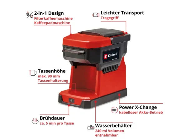 Produktübersicht Einhell Akku-Kaffeemaschine