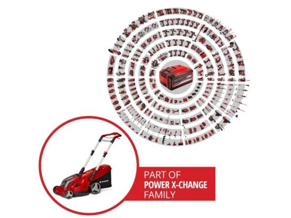 Für grünen, gleichmäßigen Rasen im heimischen Garten sorgt der kraftvolle Einhell Akku-Rasenmäher Rasarro 36/42 . Der 15 kg leichte und kompakte Mäher arbeitet sich mit einer Schnittbreite von 42 cm durch das Gras und wird für bis zu 725 m² große Rasenflächen empfohlen. Der Akku-Rasenmäher ist Teil der Einhell Power X-Change Familie, in der alle Akkus, Ladegeräte und Systemgeräte flexibel kombiniert werden können.