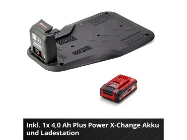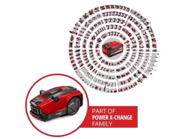Er ist für eine Rasenfläche bis zu 600 m² ausgelegt. Im Lieferumfang sind ein 4,0 Ah Power X-Change Plus Akku, eine Ladestation, 3 Ersatzklingen, 12 m Leitkabel, 5 m Magnetband, 25 Befestigungshaken und 2 Verbindungsklemmen enthalten.
