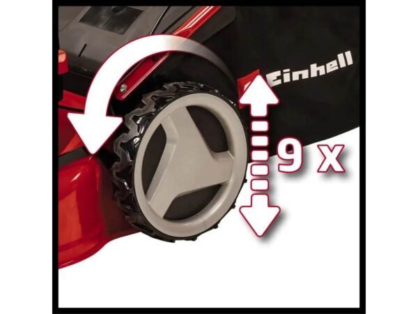 Dank der neunstufigen zentralen Schnitthöhenverstellung lässt sich die Schnitthöhe dieses Rasenmähers besonders einfach und individuell vorwählen. Das robuste Gehäuse besteht aus formschönem, pulverbeschichtetem Stahlblech.