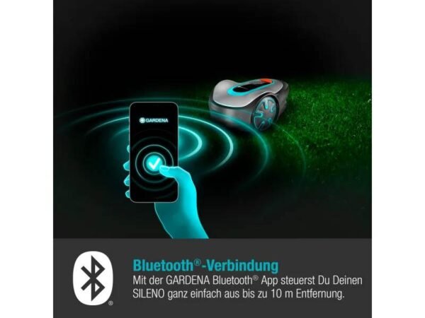Der Sileno minimo lässt sich via Bluetooth® mit der Gardena Smartphone App verbinden. Geben Sie einfach die Größe Ihres Rasens und die bevorzugten Mähtage und -zeiten in der App ein. Die Funktionen EasyApp Control, Auto Schedule und EasyConfig erleichtern die Installation und sorgen für eine unkomplizierte Bedienung.