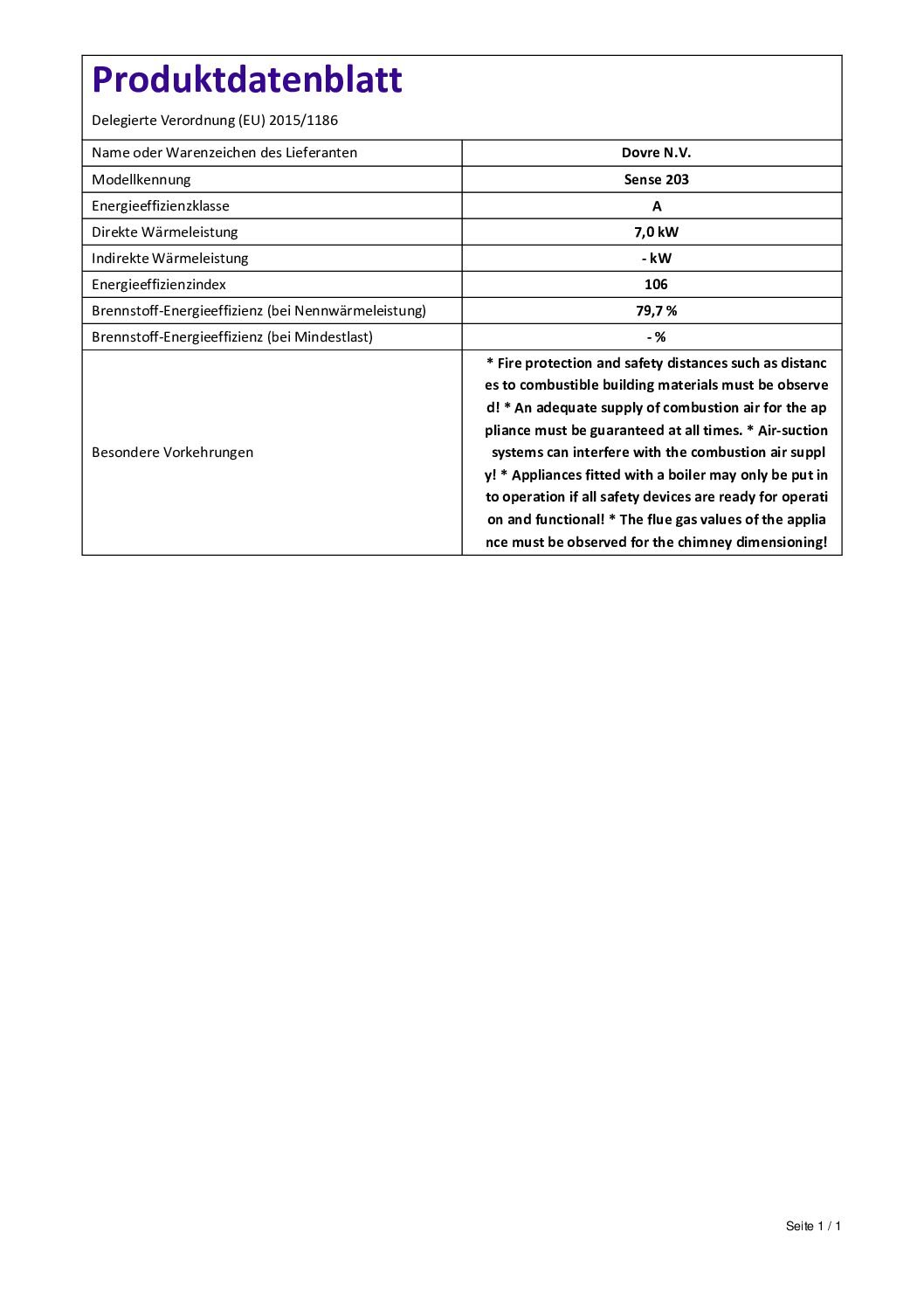 | Technische Daten Kaminofen Dovre Sense 203 | |