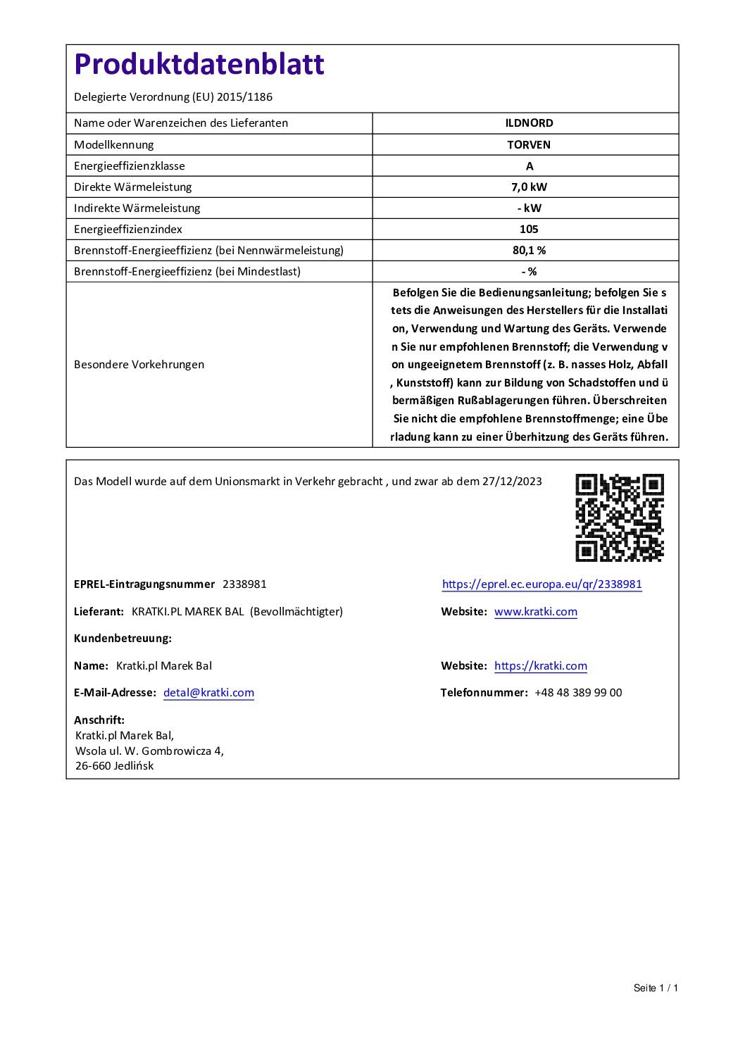 Dieser Artikel: Kaminofen ILDNord Torven 7 kW
