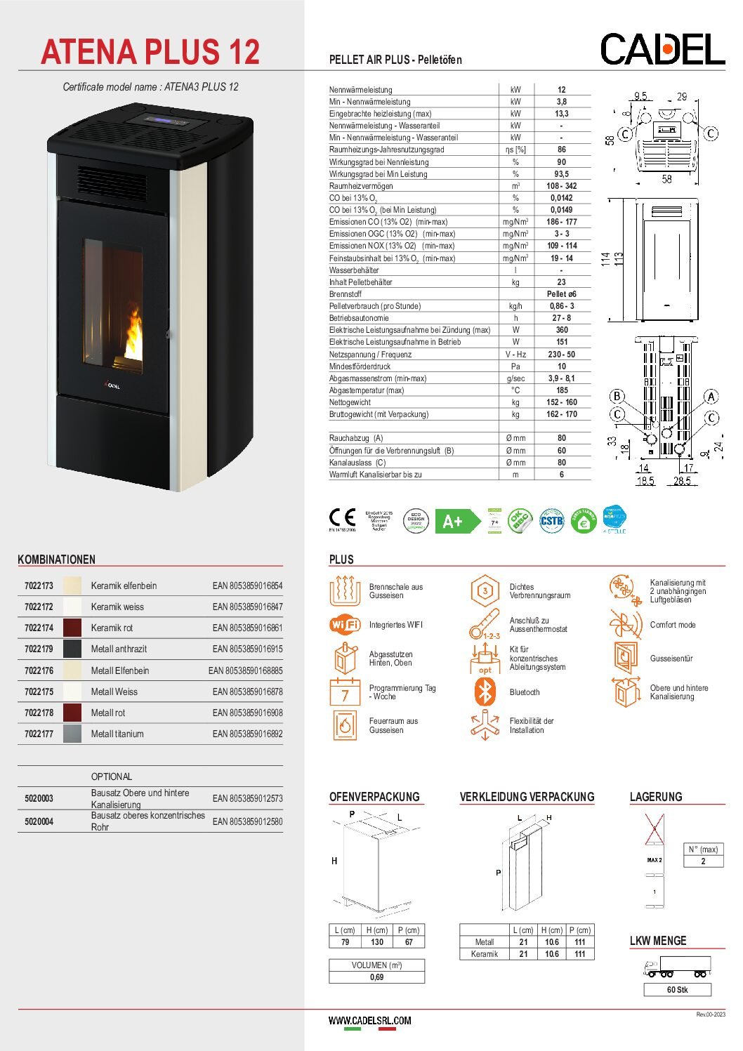 Technische Daten Pelletofen Cadel Atena Plus 12 | |