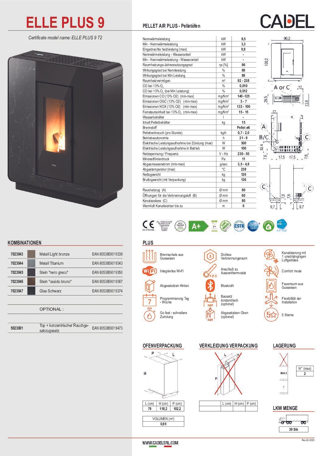 Technische Daten Pelletofen Cadel Elle Plus 9 Flexit | |