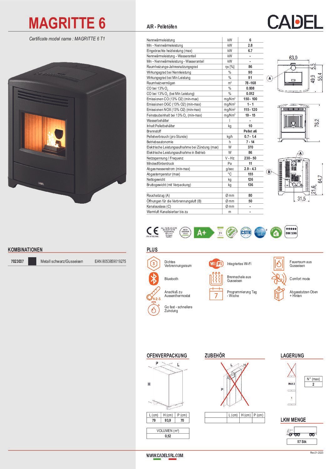 | Technische Daten Pelletofen Cadel Magritte 6 | |