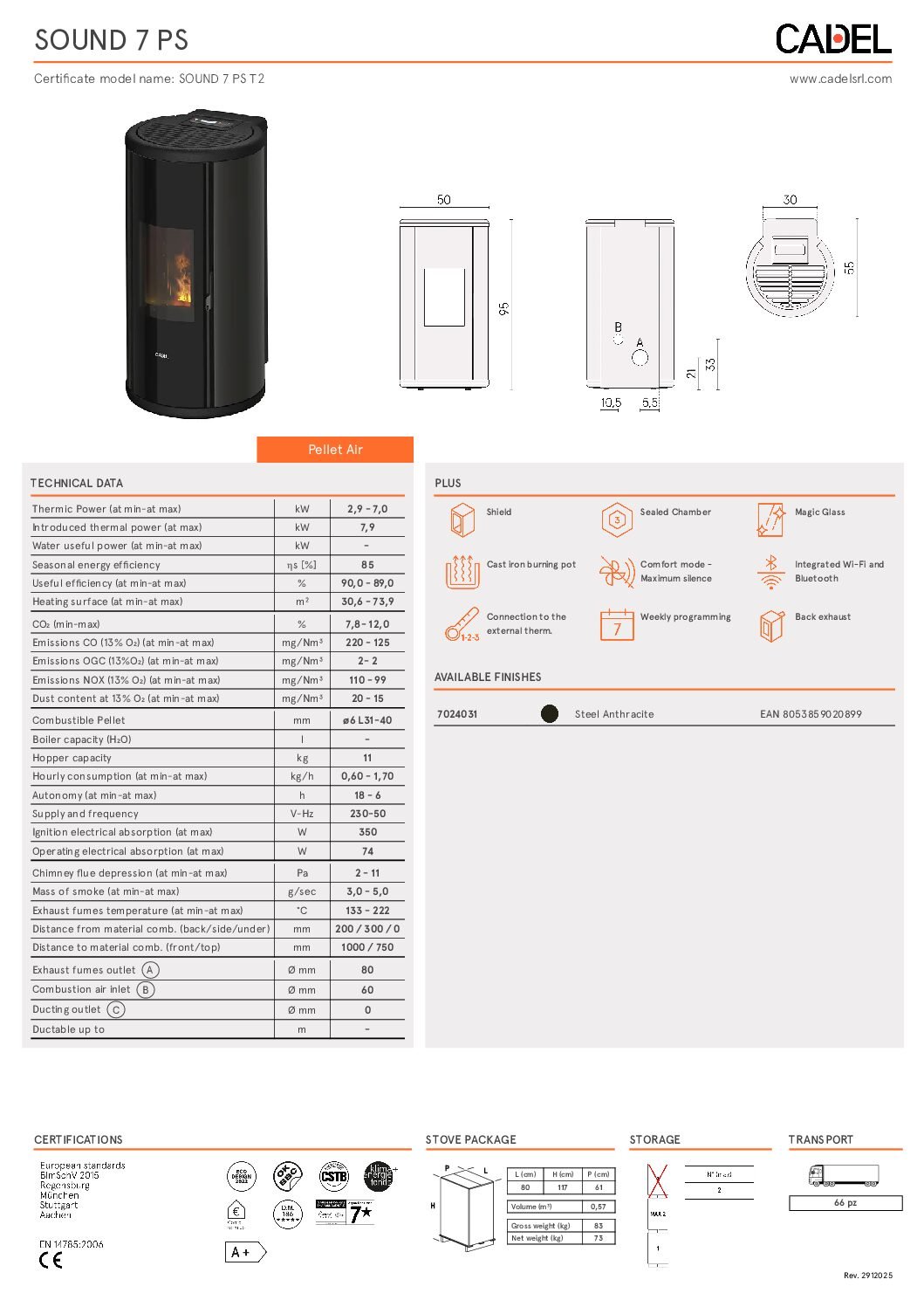 Technische Daten Pelletofen Cadel Sound 7 Ps | |