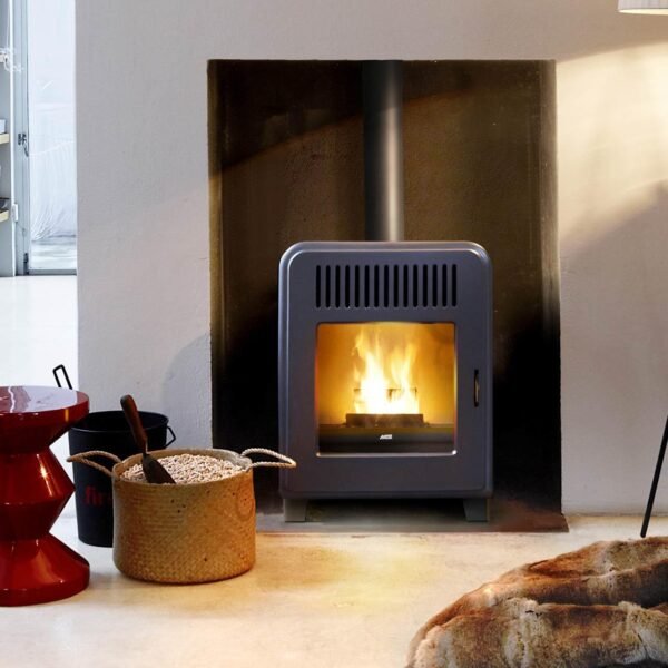 - Pelletofen mit Stahlkorpus