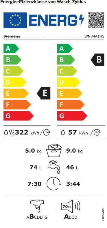 Der WN34A141 Waschtrockner ist außerdem mit einer Kindersicherung ausgestattet. Bei Maßen von 59,8 cm x 84,8 cm x 59 cm (BxHxT) vereint der Waschtrockner Form und Funktion auf attraktive Weise.