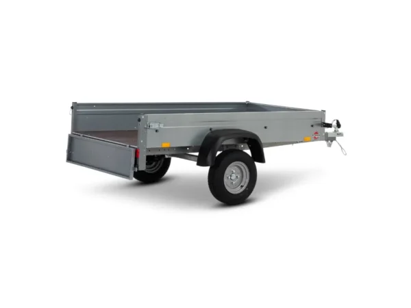 Der Autoanhänger ist mit Multifunktionsleuchten inkl. Nebelschlussleuchte ausgestattet. Der Boden besteht aus wasserfest verleimtem Mehrschichtholz mit phenolharzbeschichteter, rutschhemmender Oberfläche. Der sichere Transport wird durch die V-Deichsel unterstützt.