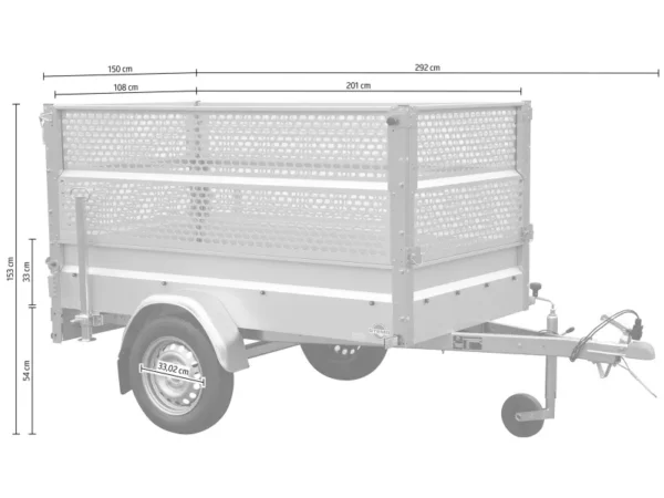 Der Stema Anhänger Basic 750 old Stema Basic 750 ist ein ungebremster Einachs-Anhänger mit montiertem Stützrad, beigelegtem Gitteraufsatz und Abstellstützen.