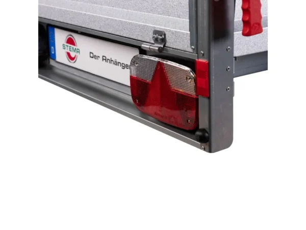 Das im Lieferumfang enthaltene Stützrad erhöht nicht nur die Beweglichkeit des PKW-Anhängers, sondern verhindert außerdem das Kippen des Anhängers. Während Ihrer Pausen schützt die mitgelieferte Diebstahlsicherung den Anhänger vor Fremdzugriffen. Die Rückwandklappe wird durch die Stema-Sicherheitsverschlüsse vor dem versehentlichen Aufspringen geschützt. Die großdimensionierten Multifunktionsrückleuchten inklusive Nebelschlussleuchte werden über den 7-poligen Stecker an den Strom angeschlossen.