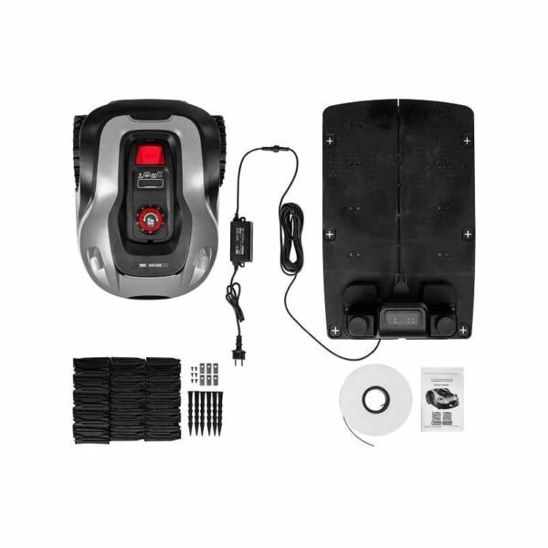 Im Lieferumfang des RMX1600 sind eine Ladestation, ein Netzteil, 200 m Begrenzungskabel, 280 Kunststoffheringe, 9 rotierende Klingen und eine ausführliche Anleitung enthalten. Mit seiner robusten Konstruktion und den fortschrittlichen Funktionen ist der Texas Mähroboter RMX1600 die ideale Wahl für die Rasenpflege großer Flächen.