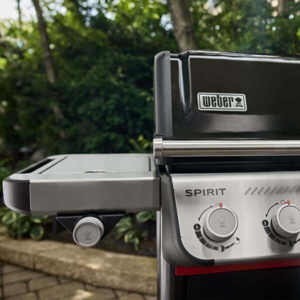 - Robustes Design: Edelstahl-Bedienfeld und feststehende Seitentische mit Weber WORKS Zubehörleiste.